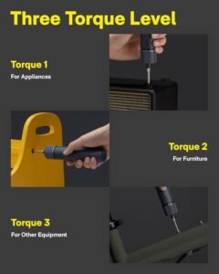 • Three Torque Settings: Offers three adjustable torque levels for different applications. Electric mode delivers up to 4 N·m, while manual mode provides up to 8 N·m for extra control. The built-in smart sensor stops rotation when the button is released, ensuring safe and precise one-handed operation