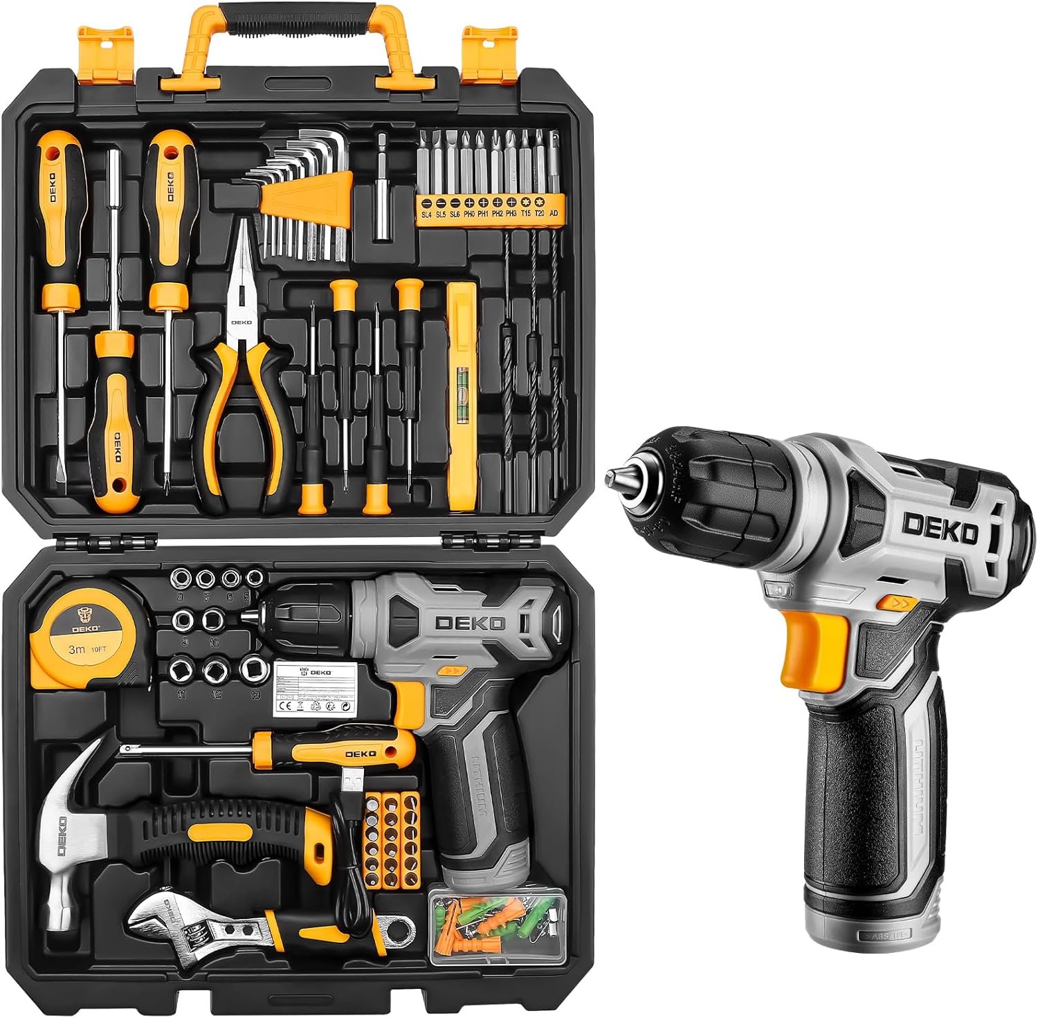 Tool Kit: DEKO Drill Set with Cordless Drill, Tool Kit Set Box, DIY Hand Tools for Men and Home, with 8V Electric Drills,126 Piece